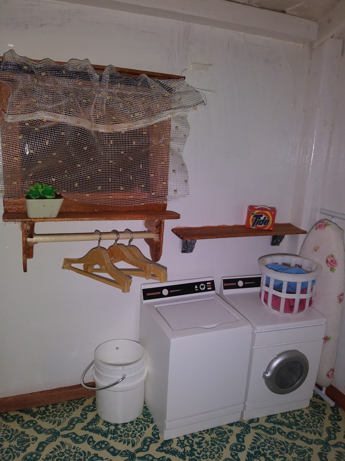 I am happy enough with the painted roof that I am not in a hurry to shingle it. Eventually I will likely want to but for now it is such an improvement that I don't feel the need. I can't believe how much of a difference the shutters make. It looks like a finished house now. I don't think I am finished with interior accessories. Just waiting for inspiration now.
